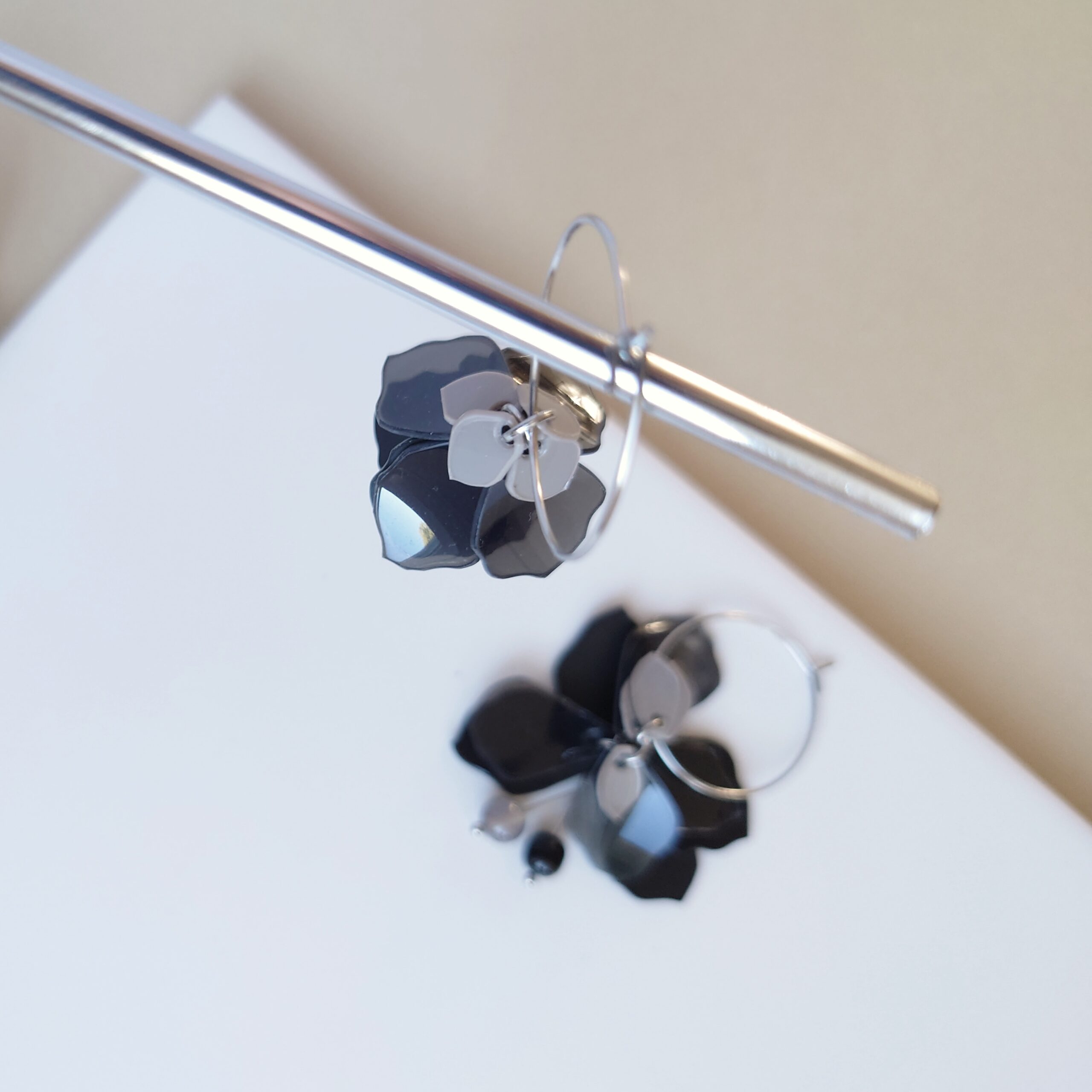 Erittäin kevyt korvakoru, jossa kaunis riippuva kukan muoto.