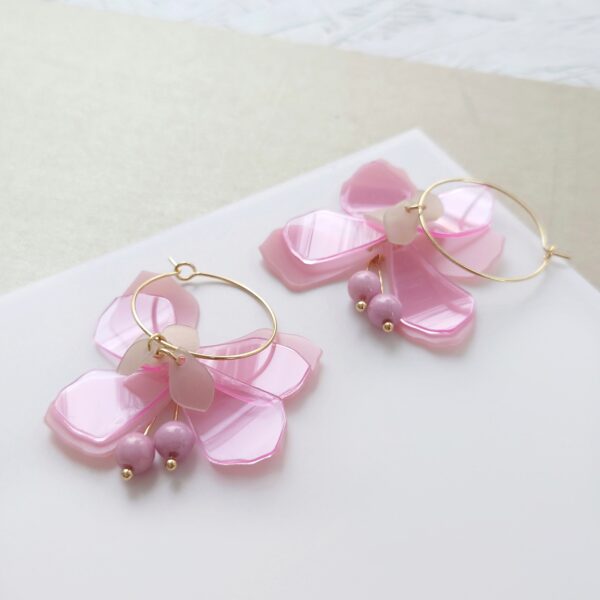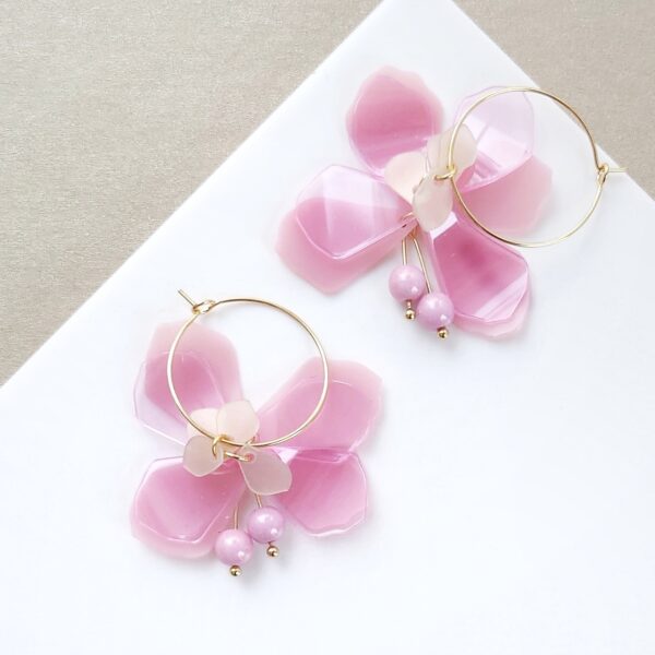 Erittäin kevyt korvakoru, jossa kaunis riippuva kukan muoto.