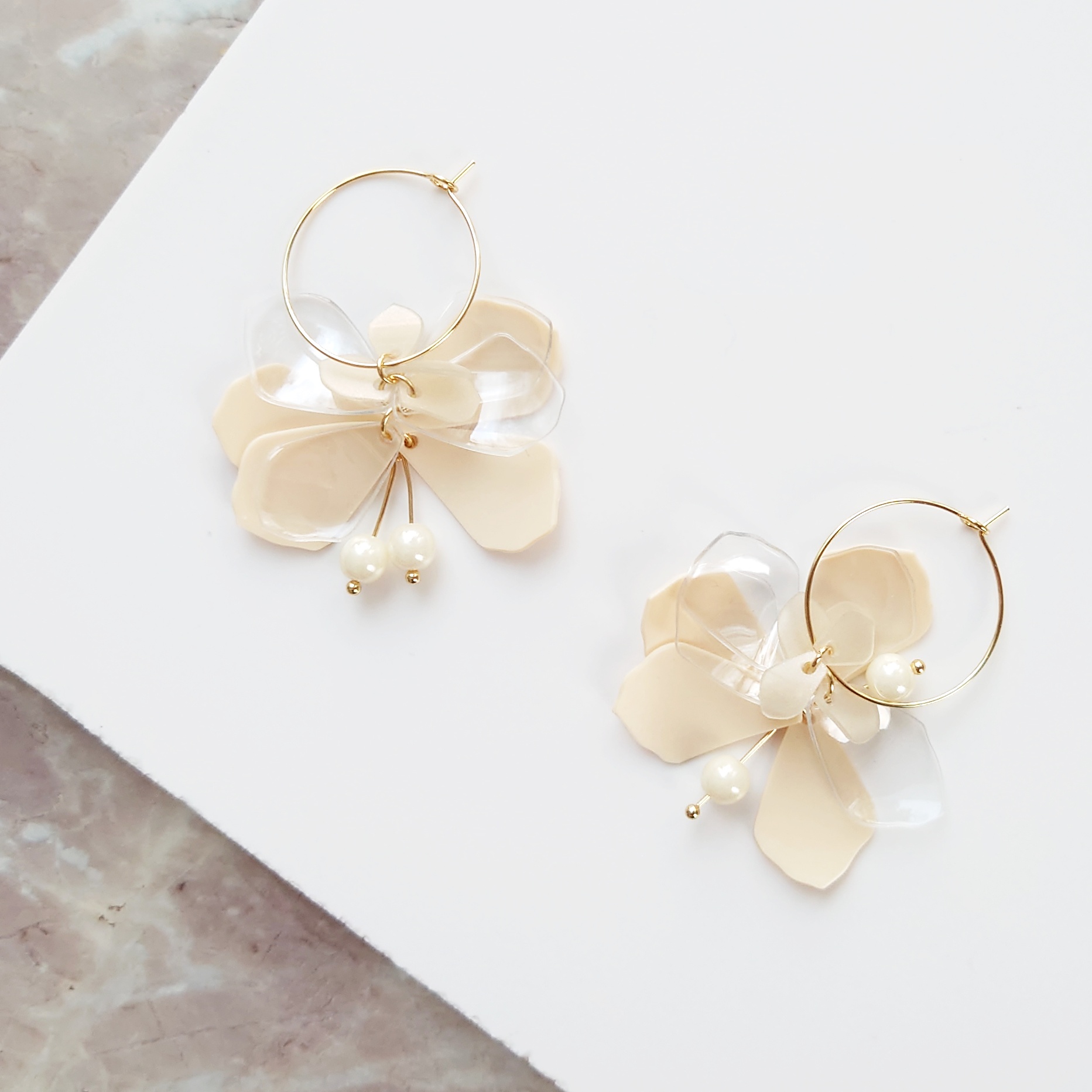 Erittäin kevyt korvakoru, jossa kaunis riippuva kukan muoto.