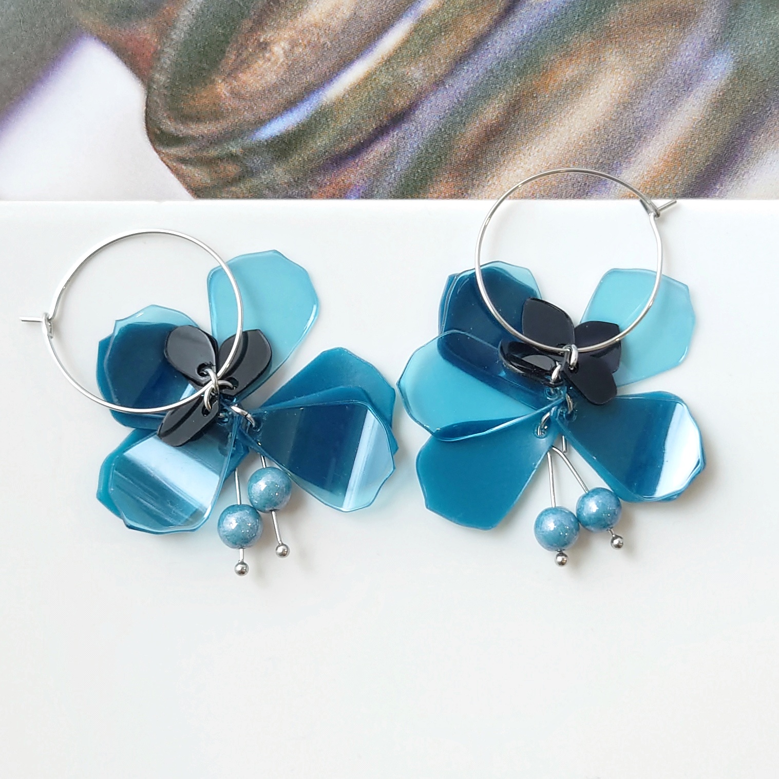 Erittäin kevyt korvakoru, jossa kaunis riippuva kukan muoto.