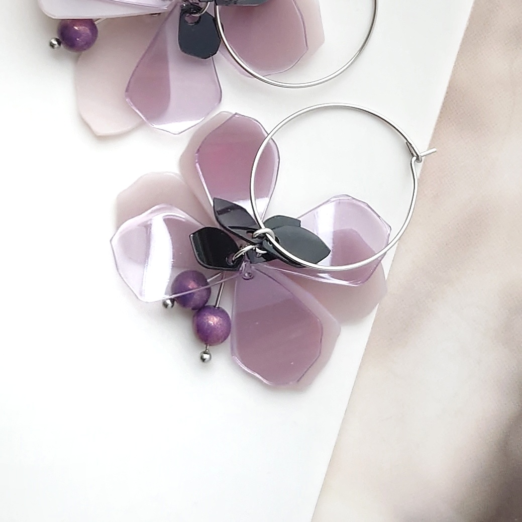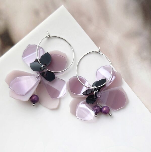 Erittäin kevyt korvakoru, jossa kaunis riippuva kukan muoto.