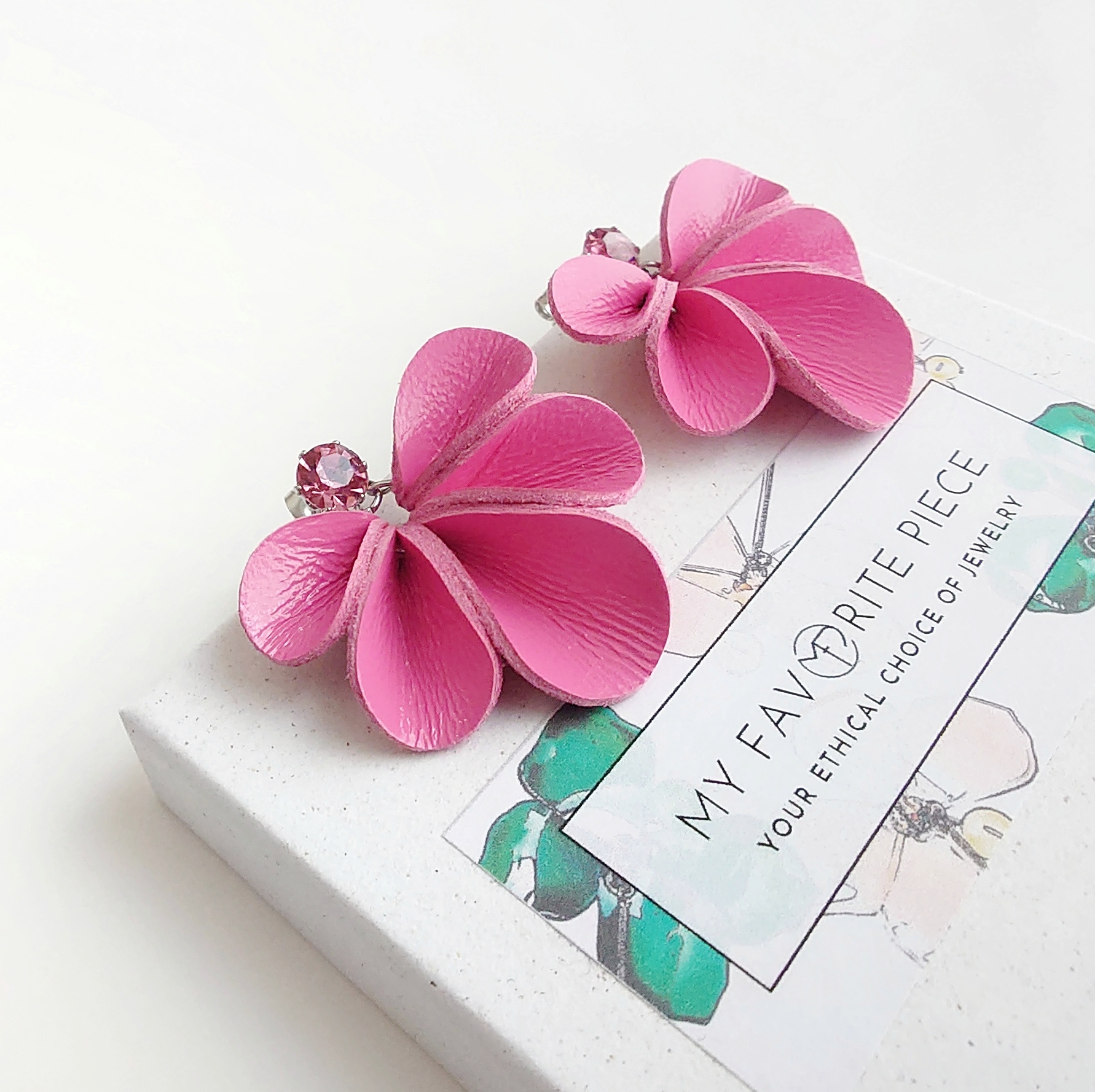 Kaikki My Favorite Piecen tuotteet on valmistettu kierrätysmateriaaleista, leikkuujätteestä ja ylijäämästä käsityönä Suomessa. Korut ovat keveitä, mutta kestäviä.